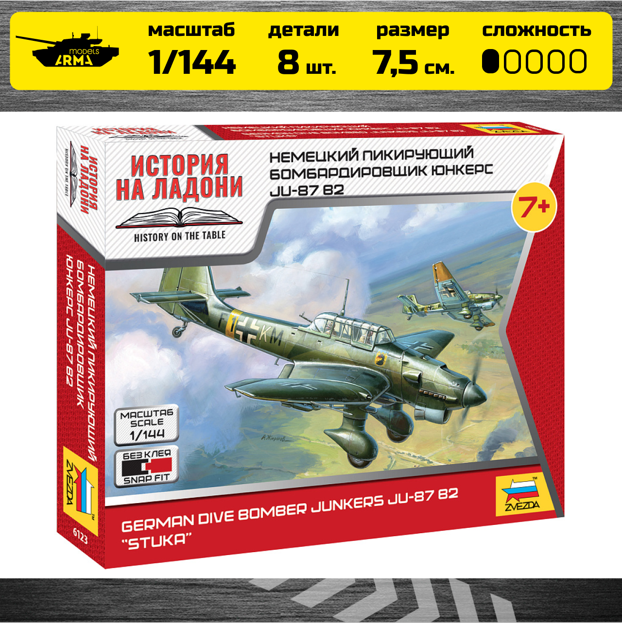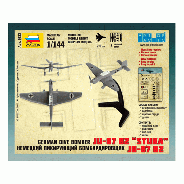 На сегодняшний день товар «Сборная модель Звезда Немецкий бомбардировщик Ju-87B2 без клея 1:144 (6123)» можно купить с кешбеком в 1 магазине: Яндекс.Маркет