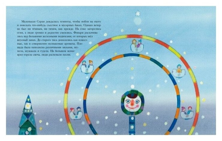 мне кажется, эта книга больше философская, чем праздничная – поэтому совсем не обязательно ждать нового года, чтобы её прочитать. Она и добрая, и даёт много пищи для разговоров. И о доброте, и о животных, которые живут без присмотра. И о том, что люди действительно несут ответственность за тех, кто слабее. И это должен быть не просто разговор, это какая-то конкретная помощь. Очень понравились иллюстрации Ганчева – они и милые, и нежные, как справедливо тут пишут. И ребёнку нравятся, и мне – в них нет заигрывания с юным читателем.