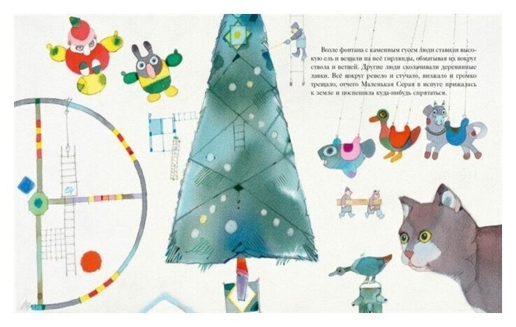 Трогательная новогодняя история – наверное, внезапная покупка для лета, но почему нет? Очень милые акварельные иллюстрации – нежные, как будто размытые, как все акварельные картинки. Маленькая Серая выглядит совсем как живая, при этом не теряя своей художественности, обладая вполне антропоморфными выражениями мордочки.