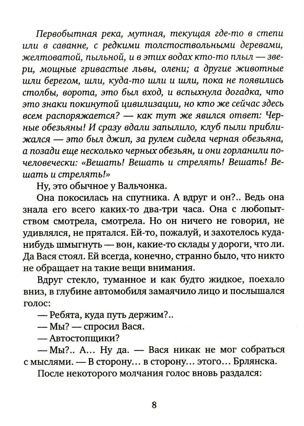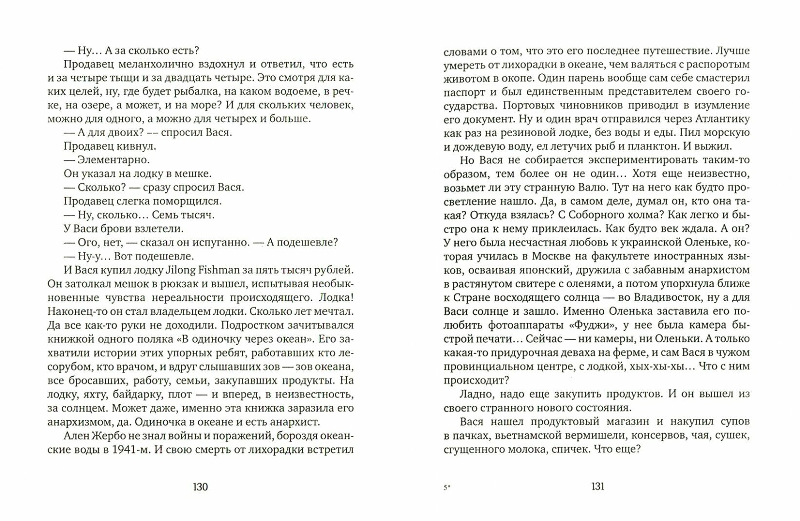 Мне страшно понравилась эта книга. Двое странных бродяжек Вася-анархист и Валя (не знаю как определить одним словом — наивная, неприспособленная к жизни, добрая дурочка) путешествуют по России — а хотели бы совсем сбежать. Встречи с людьми — самыми разными: умными и не очень, добрыми и не слишком, но вместе с тем со своей правдой в душе, неожиданные и порой опасные происшествия — открывают вдумчивому читателю сокровенное не только о героях книги, не только о стране нашей, но и о себе самом. Ведь души наши взыскуют света, добра, знания, а ковыряемся-то мы чаще всего в обыденном, рутине, а то и в чем похуже. И так же, как Вася и Валя, заблудились в поисках своего пути, — но и это уже поступок, ведь многие ничего такого и не ищут...