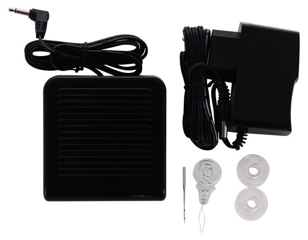 | Дополнительная комплектация | комплект игл (130/705H), шпулька (3 шт.), педаль, нитевдеватель ручной, подсветка рабочей зоны |
