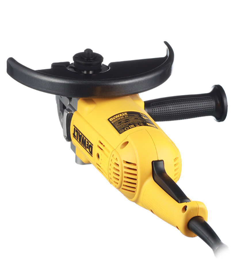 DeWALT DWE492S – углошлифовальная машина, которой особенно удобно работать благодаря двухпозиционной боковой рукоятке. Пользователь может поставить ее так, как посчитает нужным. В этой модели установлен мощный электродвигатель, обеспечивающий высокую производительность. Эффективная система пылеудаления надежно защищает его от перегрева и помогает продлить срок его эксплуатации. Шпиндель при необходимости легко блокируется, что позволяет быстро и безопасно выполнять замену диска.