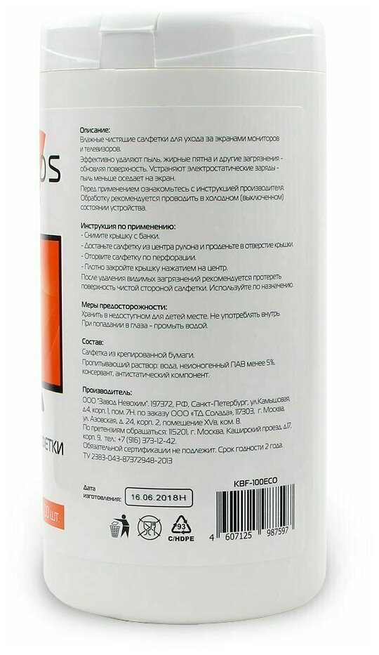 Салфетки Konoos для ЖК-экранов в банке 100 шт. KBF-100ECO