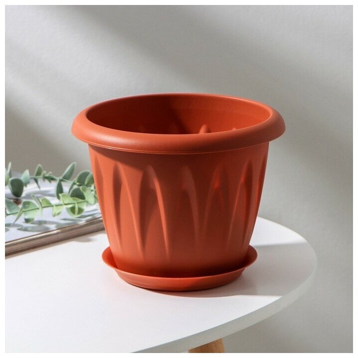 Горшки для комнатных растений Idea Пластиковое кашпо Алиция с поддоном терракотовое D 18 см