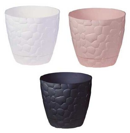 Кашпо IDEA поможет комнатному растению органично вписаться в современный интерьер дома или офиса. Поверхность емкости из полипропилена украшена объемным узором, имитирующим морскую гальку. Благодаря такому исполнению цветочный горшок выглядит оригинально и презентабельно.