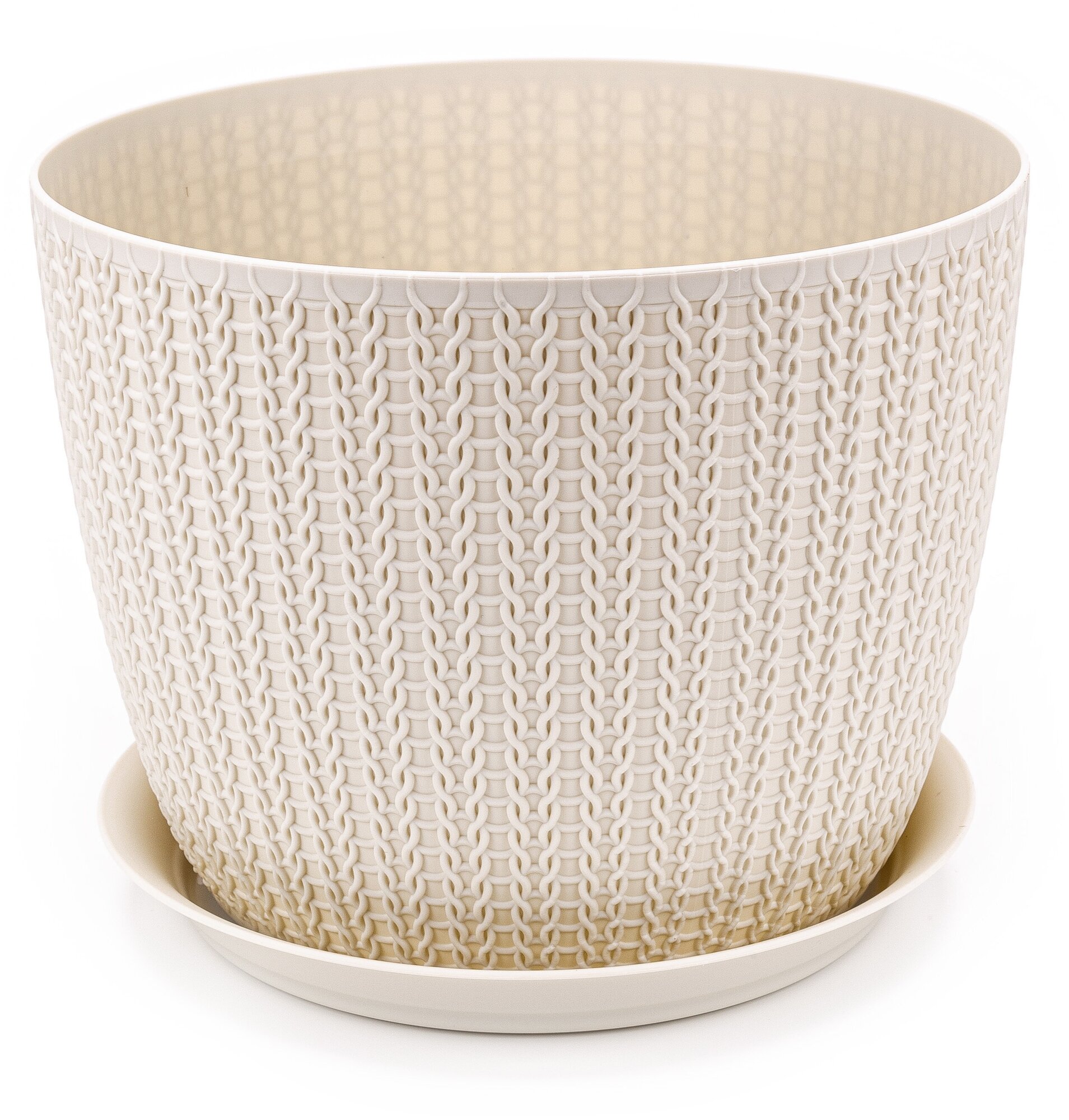 Модель: Пластиковое кашпо Idea Вязание с поддоном белое D 21 см