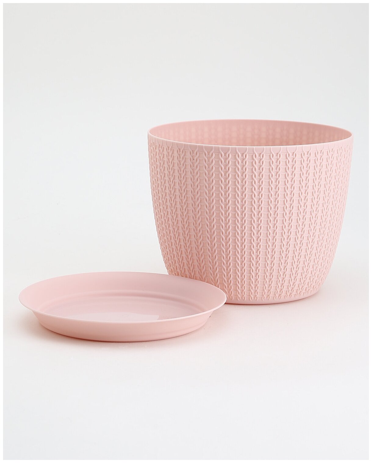 Модель: Пластиковое кашпо Idea Вязание с поддоном чайная роза D 15.5 см