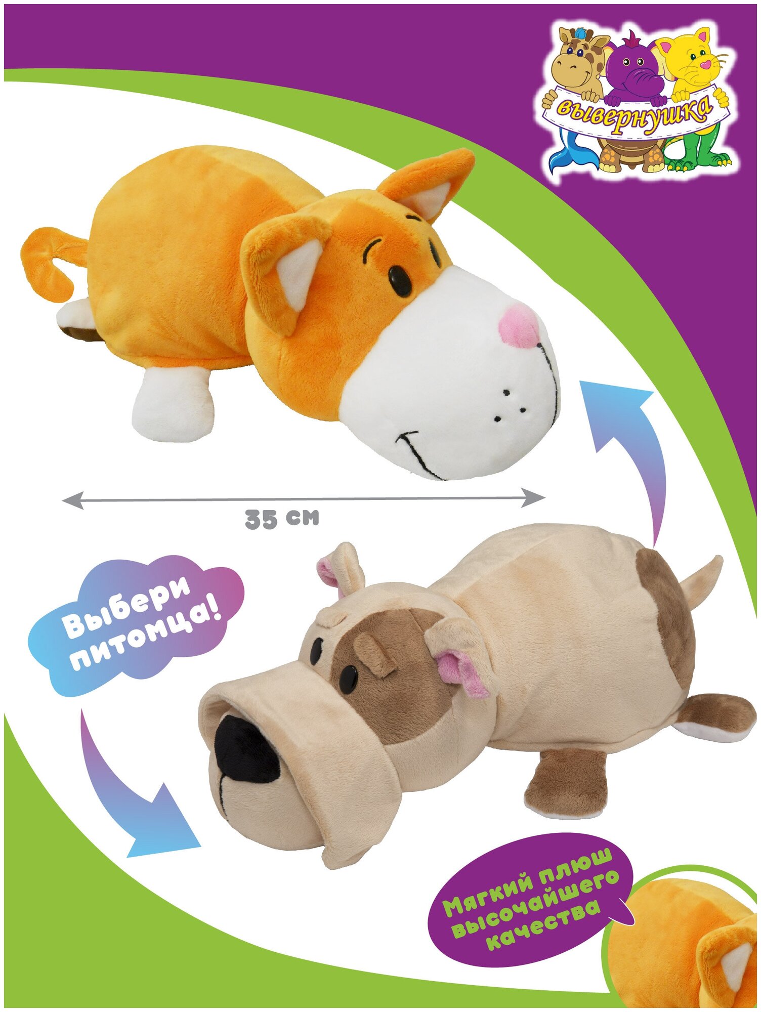 Плюшевая игрушка Вывернушка очень необычная. С одной стороны это Кот, а с другой - Бульдог. Эти два милых животных спокойно уживаются друг с другом благодаря тому, что пока Вы играете в одну игрушку, другая спокойненько ждёт своей очереди, спрятавшись внутри первого животного.
