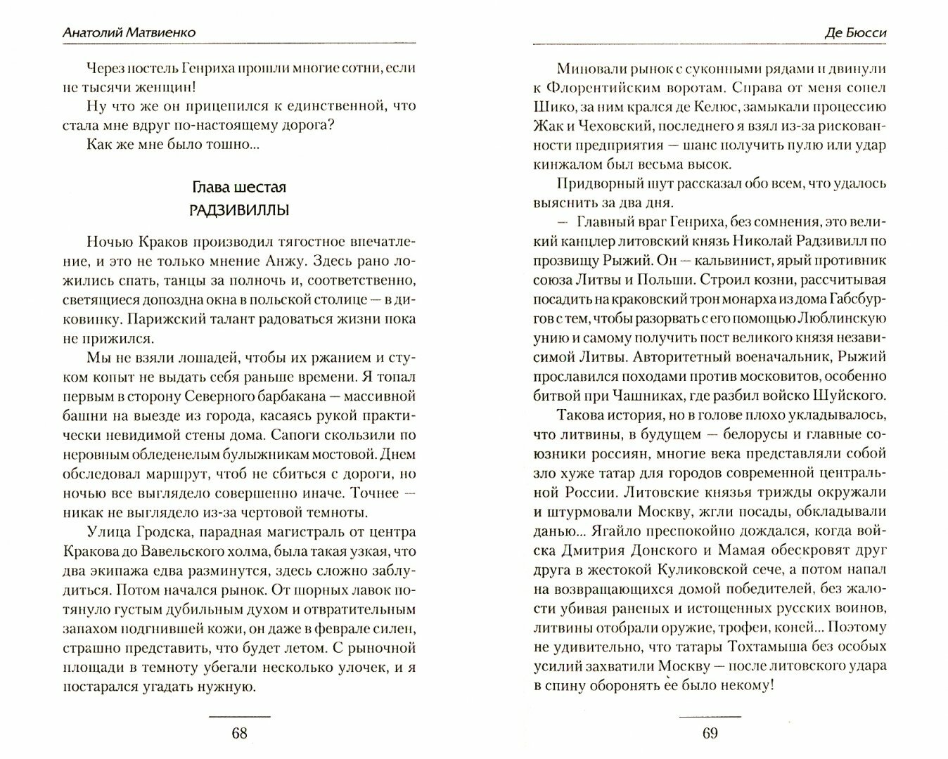 Поначалу казалось, что этот роман задуман автором как приквел к знаменитому роману Александра Дюма "Графиня де Монсоро". Наш современник, офицер внешней разведки, советник по культуре посла России в Париже (а не секрет, что эта должность изначально в спецслужбах мира ЦРУ, Моссаде, КГБ или ФСБ использовалась как "крыша"), каким то образом оказывается в теле Луи де Клермона сеньора де Бюсси. И происходит это в канун Варфоломеевской ночи. До встречи с графиней де Монсоро, окончившейся для Бюсси весьма печально, еще семь лет. Начало повествования переносит читателя в Польшу куда направляется будущий польский король Генрих Анжуйский Валуа, со свитой, в которой и наш главный герой. Здесь же мы встретим и давних знакомых по роману Дюма - королевского шута Шико, графа де Келюса. Однако, как оказалось господину Матвиенко очень далеко до таланта А. Дюма. Интрига слабенькая, герои страдают юношескими комплексами, вообщем сплошные розовые... слюни. Сразу скажу сей опус я одолеть не смог даже на треть, бросил. Не рекомендую, только зря потеряете время.