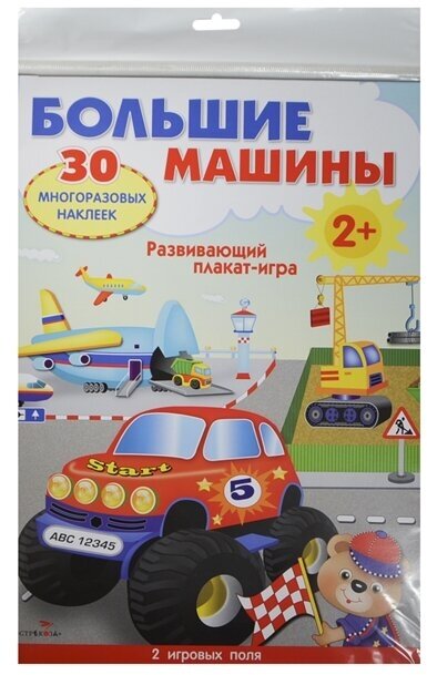 Большие машины. Развивающий плакат-игра с многоразовыми наклейками (Вовикова О. (худ.)); Стрекоза, 2014