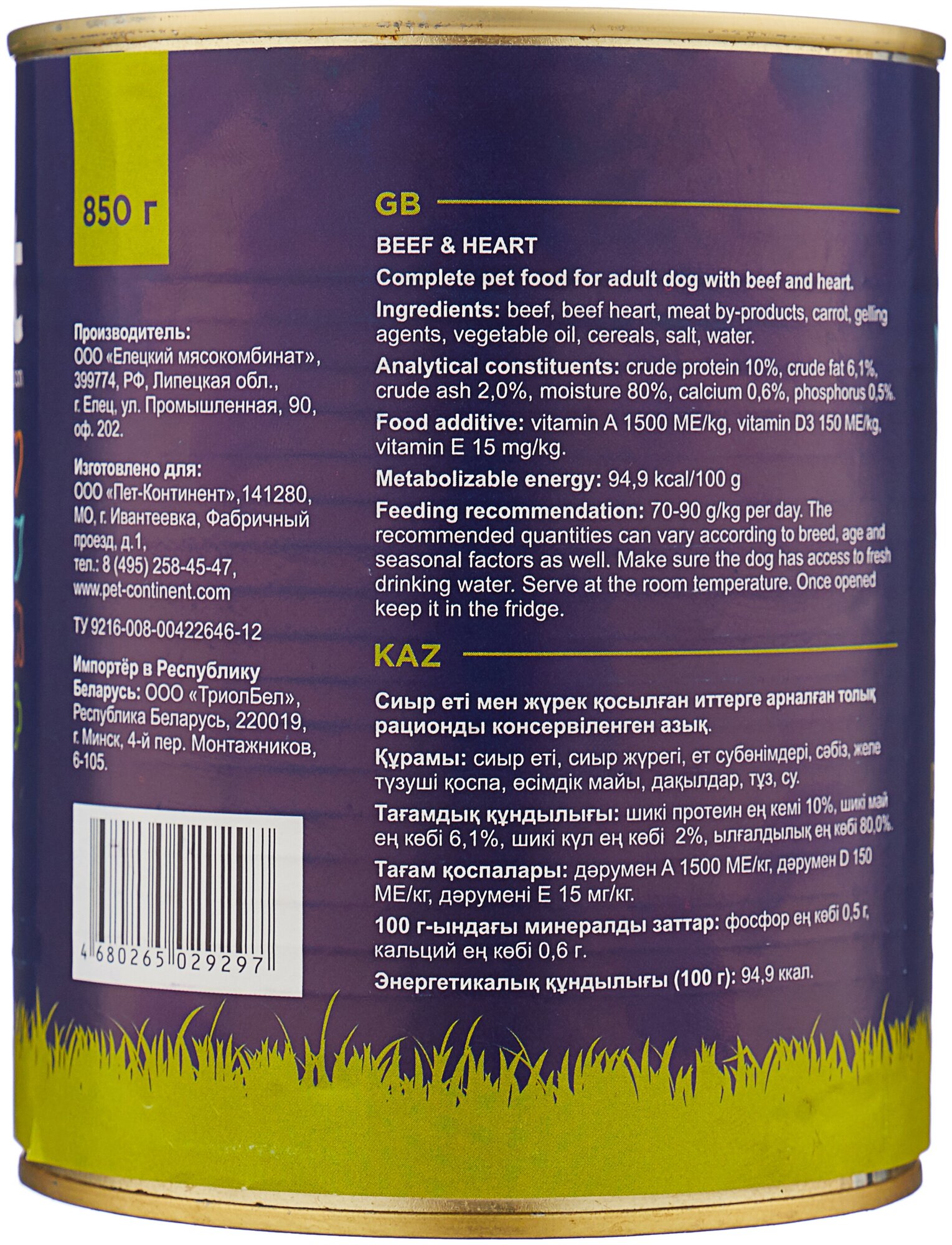 Корм для собак BRIT Полнорационный консервированный корм Brit для собак всех пород говядина и сердце