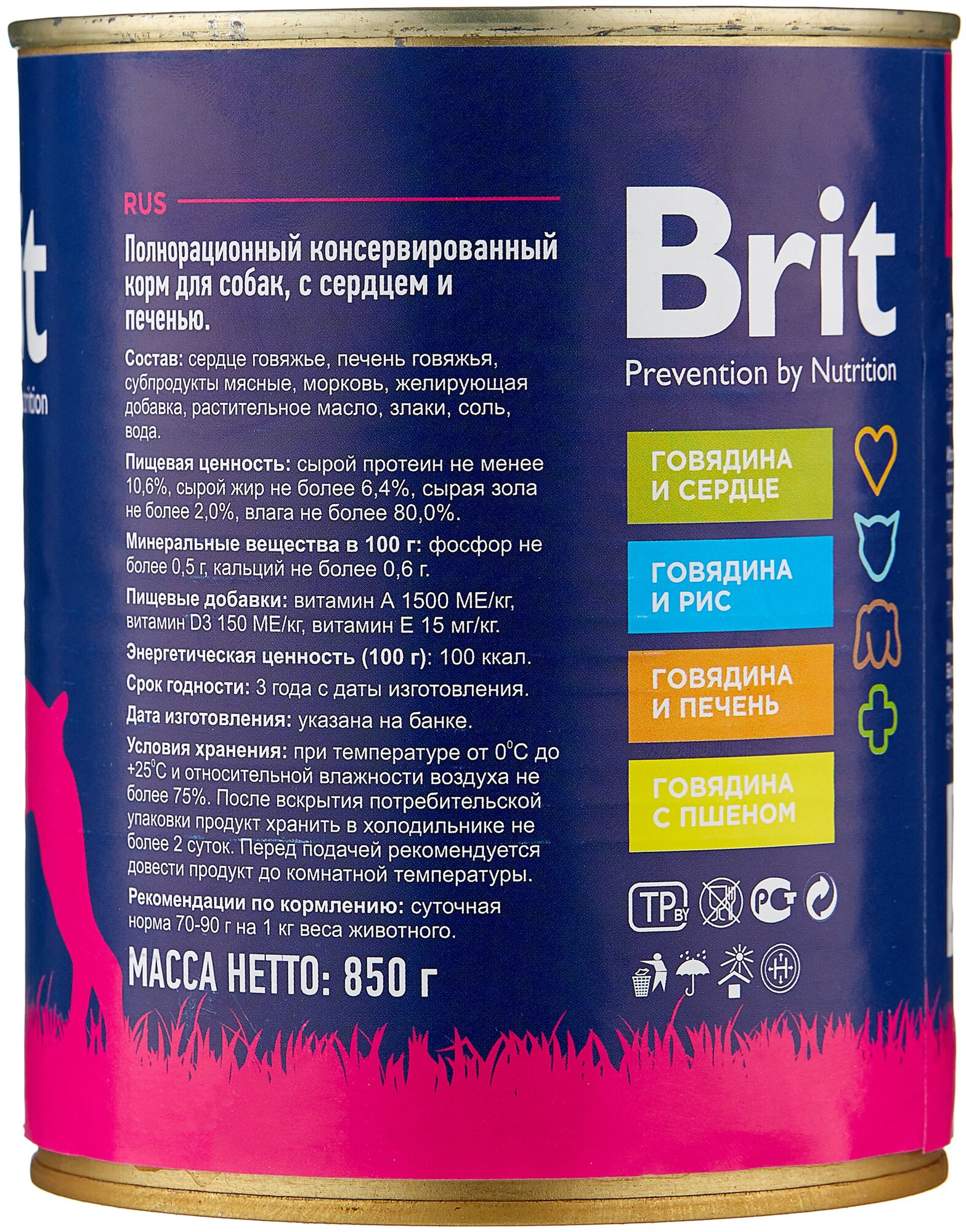 Модель: Полнорационный консервированный корм Brit для собак всех пород сердце и печень
