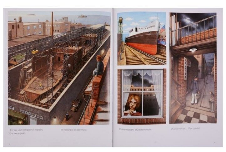 Больше всего в книге мне нравятся морские пейзажи. Рассветы и закаты, бури и штиль выражают самые разные чувства двух главных героев – капитана и «Клементины», его корабля. Путешествие торгового судна – это и будни моряков, и экзотические пейзажи, а еще в иллюстрациях Инноченти, если всмотреться, оживают страницы истории Европы ХХ века: гражданская война в Испании, движение «Солидарность» в Польше. Когда я увидела военную главу из жизни «Клементины» - походы в составе Северных конвоев, которые доставляли оружие для Красной армии (на странице 25 «Клементина» швартуется в Архангельске) – то эта история стала мне еще ближе." -