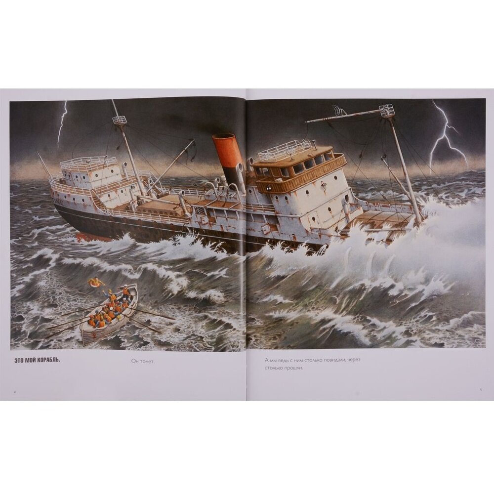 Это трогательная история от лица капитана корабля, затрагивает и мирное время, и войну, показывает и дружбу, и любовь... Главное - иллюстрации, потрясающие, подробные, захватывающие. Многого нет в тексте, но можно увидеть именно на рисунке. Например, уже вначале книги мы замечаем будущую жену капитана - и есть два рифмующихся ее портрета в окне. Молодая, она плачет, провожая капитана в дальнее плаванье, а постаревшая - встречает его из последней экспедиции.