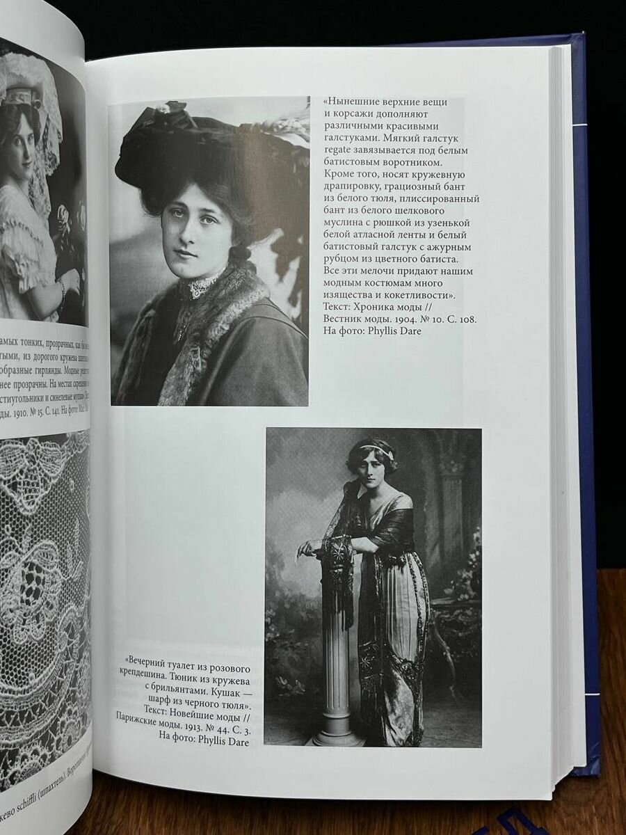 Я даже не знаю, что шикарнее - фото начала ХХ века или информация о кружевах. Восхитительные архивные кадры, где под каждым фото есть сведения, из какого журнала или с какой открытки взято изображение. Есть разбор кружев, и сравнение по типу создания. Можно разобраться в нюансах названия и метода изготовления. Много цитат из журналов ХХ века. Мощное исследование, которое бесценно в своей неисчерпаемой информативности!