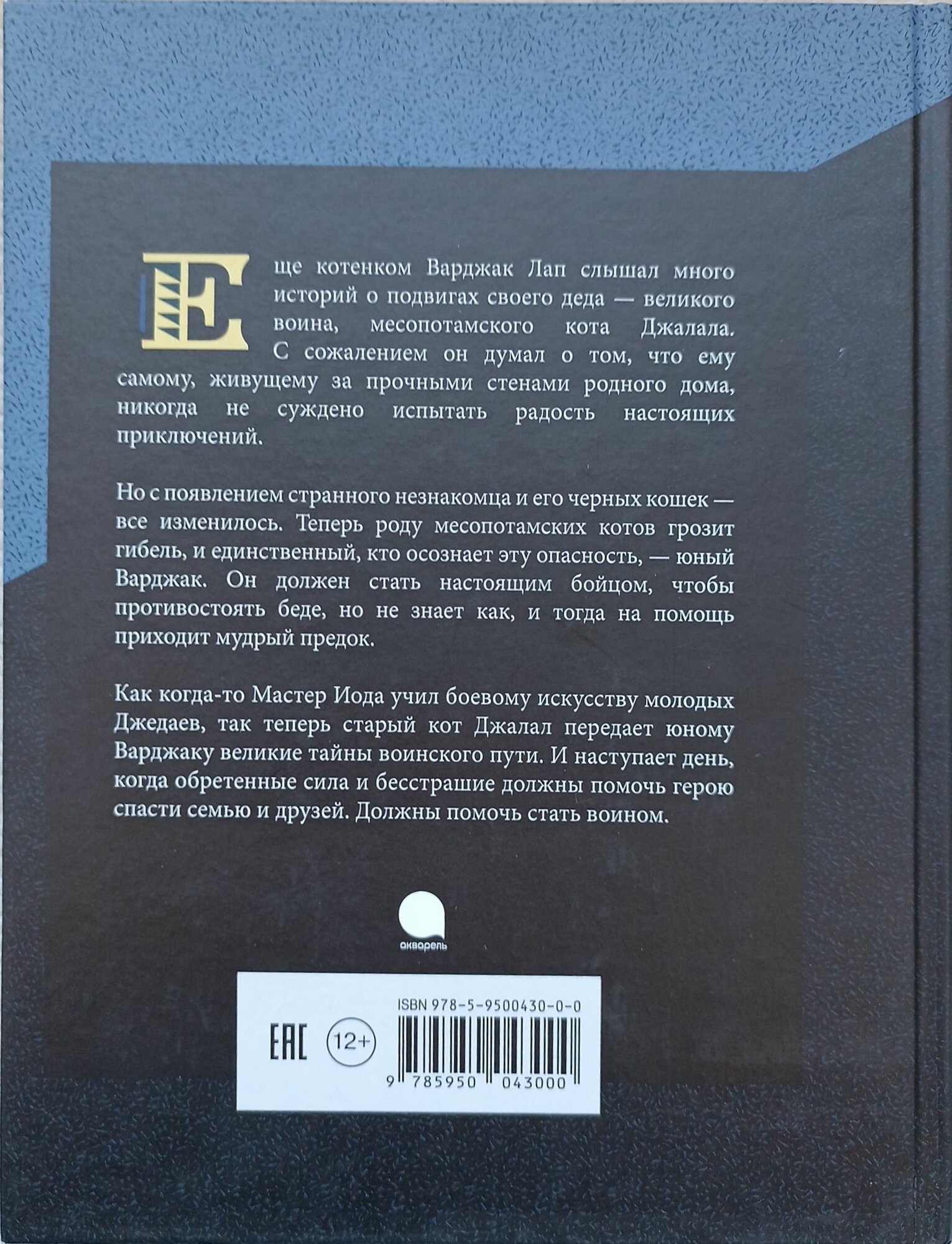 Еще котенком Варджак Лап слышал много историй о подвигах своего деда - великого воина, месопотамского кота Джалала. С сожалением он думал о том, что ему самому, живущему за прочными стенами родного дома, никогда не суждено испытать радость настоящих приключений. Но с появлением странного незнакомца и его черных кошек - все изменилось. Теперь роду месопотамских котов грозит гибель, и единственный, кто осознает эту опасность, - юный Варджак. Он должен стать настоящим бойцом, чтобы противостоять беде, но не знает как, и тогда на помощь приходит мудрый предок.
