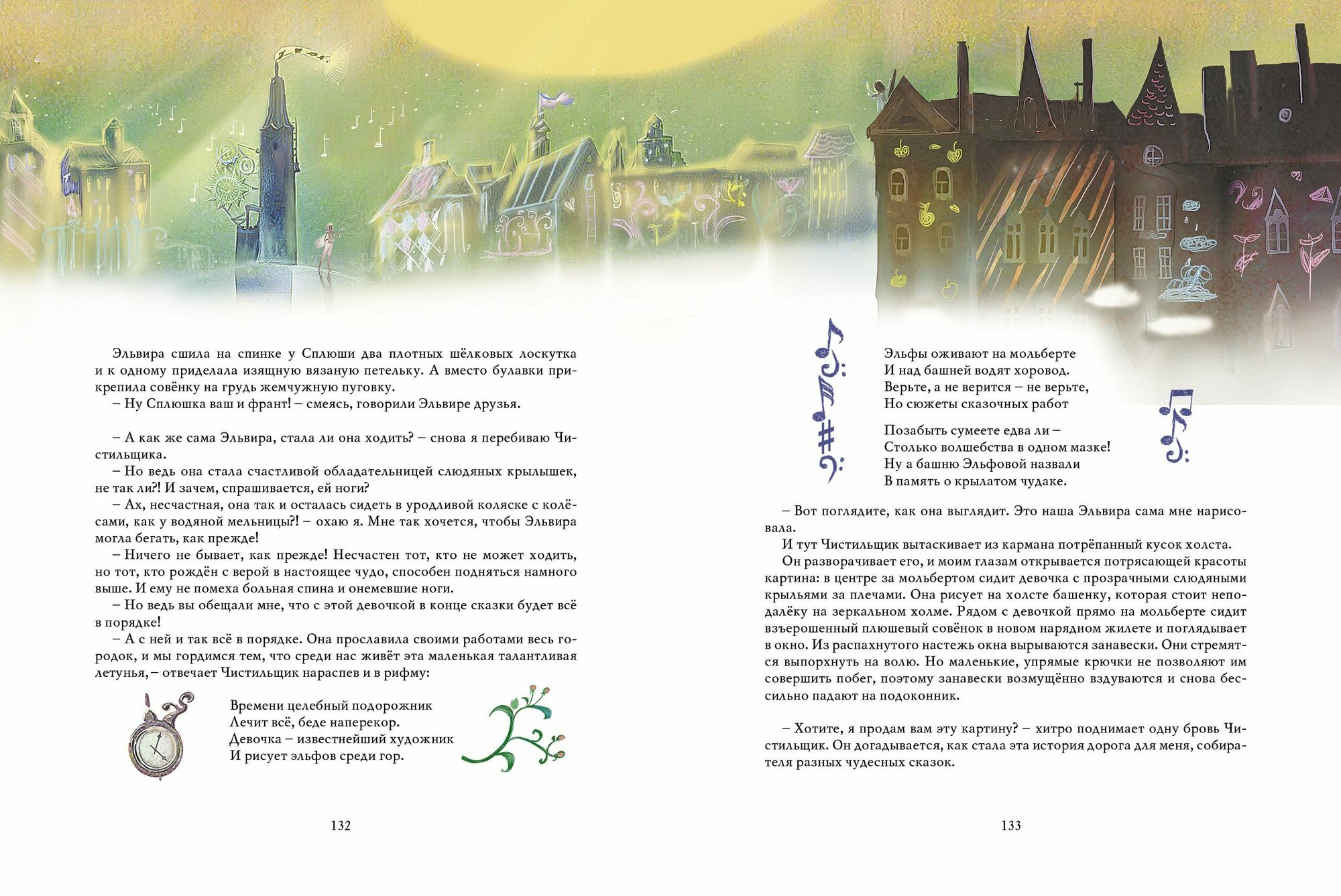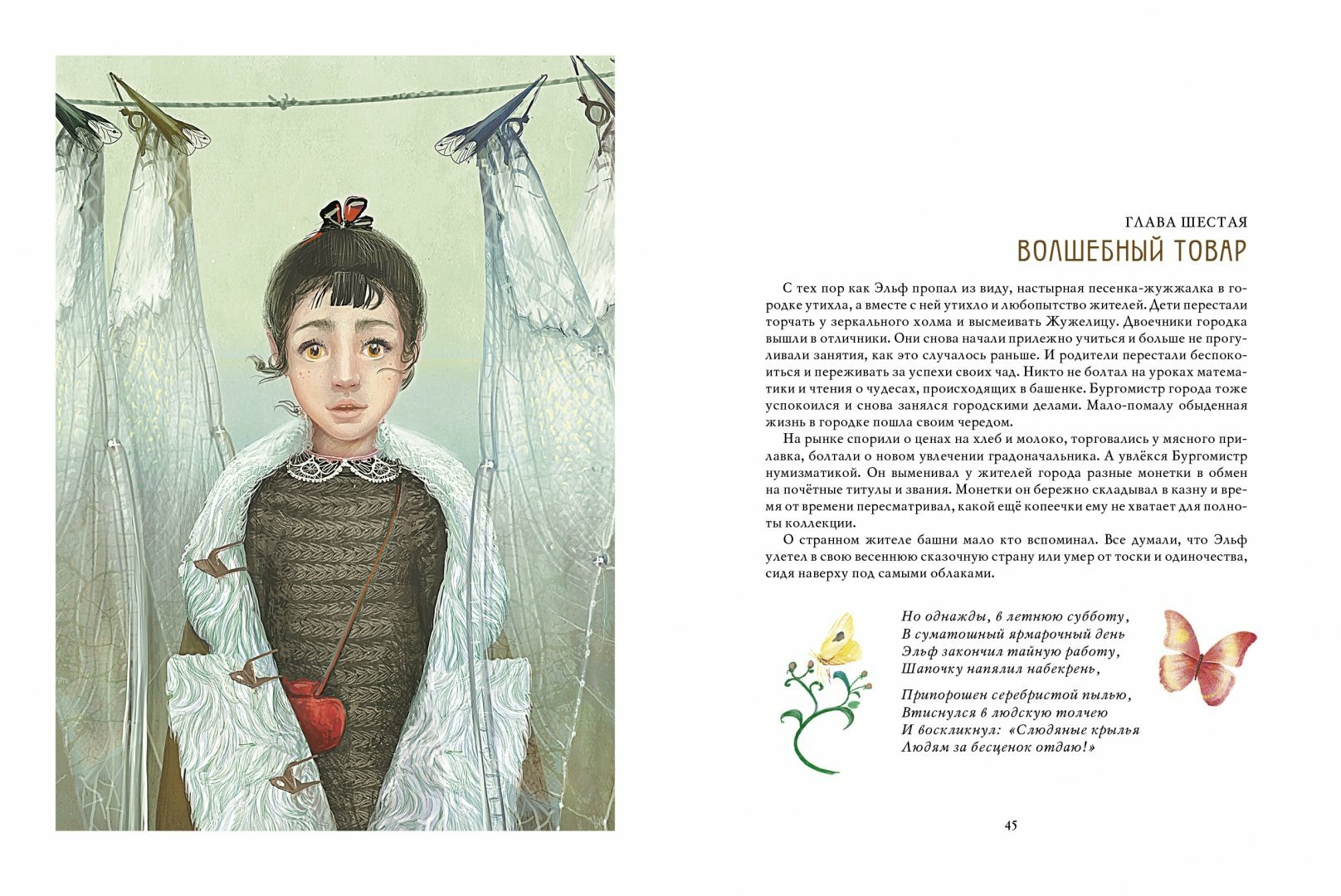 Как вы догадались, речь пойдет об эльфах, вернее об одном конкретном Эльфе, проживающем в башне, среди обыкновенных людей. Слово «обыкновенные» — очень важно в этой сказке, так как главный герой корпел и старался обыкновенным людям сделать необыкновенный подарок – крылья, чтоб летали. Что ж, горожане не оценили. Поначалу...