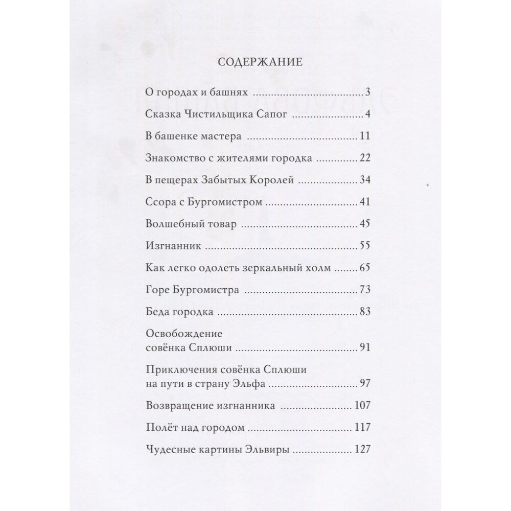 Погляди-ка, что это там за башенка стоит на волшебном зеркальном холме? Чудесная диковинка посреди самого обычного городка! Её называют Эльфовой, ведь в ней живёт самый настоящий Эльф. Талантливый изобретатель и выдумщик, он захотел подарить людям Мечту. Но слишком взрослые и серьёзные люди, совсем позабывшие, что значит мечтать, не поверили крылатому мастеру. И только храбрая маленькая девочка по имени Эльвира поверила в Мечту всей душой…