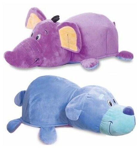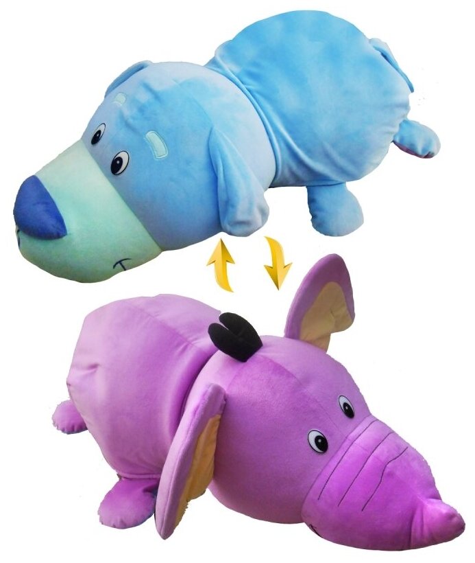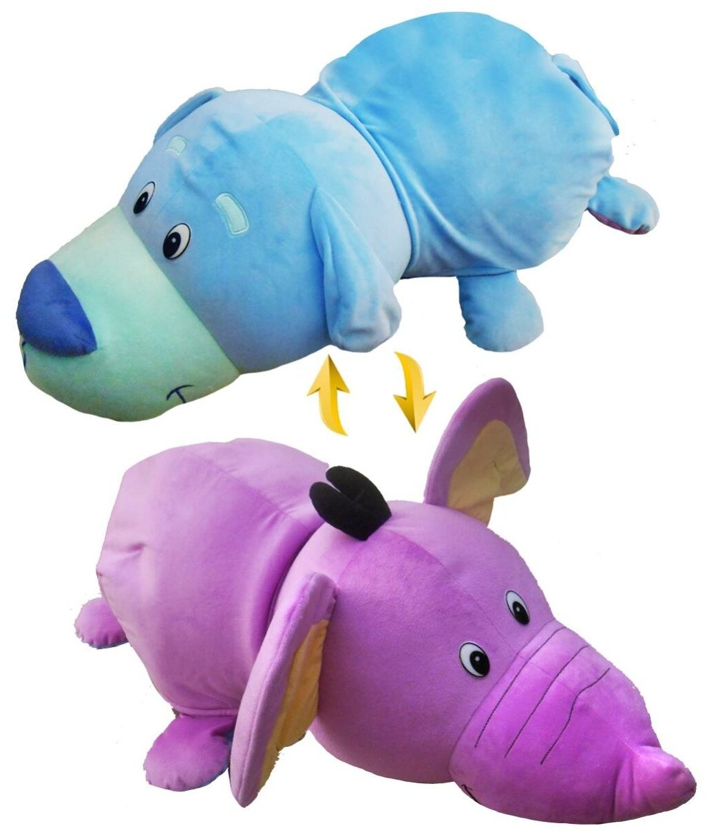Мягкая игрушка 2 в 1 1Toy Вывернушка Голубой щенок-Сиреневый Слон 76 см (Т12037)