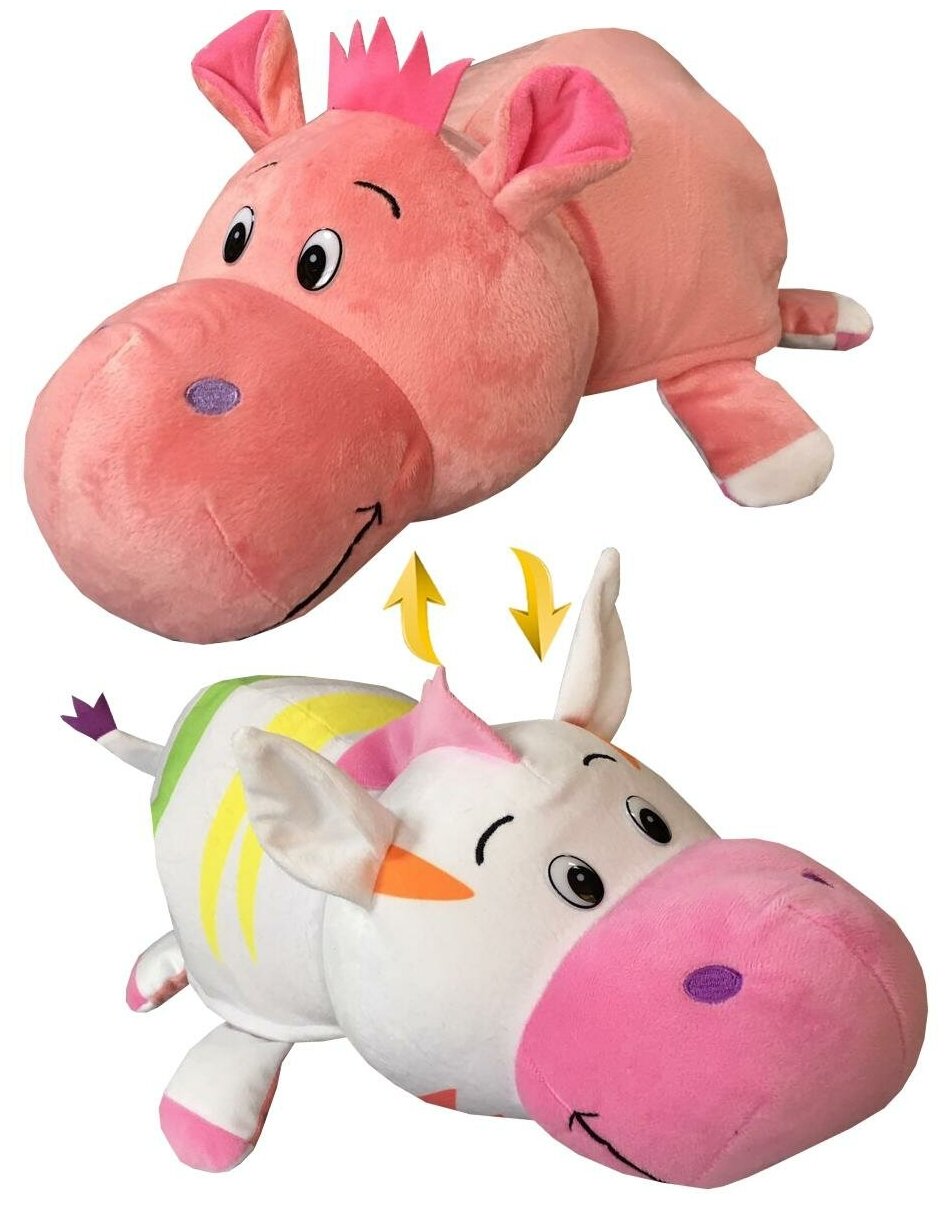 Мягкая игрушка 2 в 1 1Toy Вывернушка Радужная Зебра-Розовый Гиппопотам 76 см (Т12038)