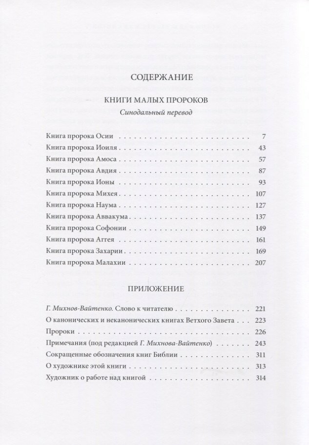 В настоящем издании книги малых пророков сопровождаются иллюстрациями известного петербургского художника Олега Михайлова, выполненными специально для издательства "Вита Нова".