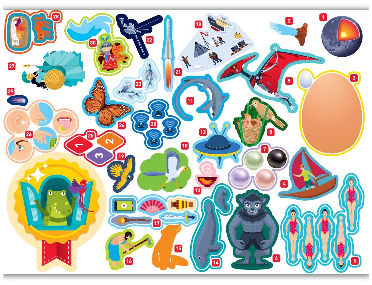 Наклейки: 117 штук, многоразовые с глянцевой ламинацией
