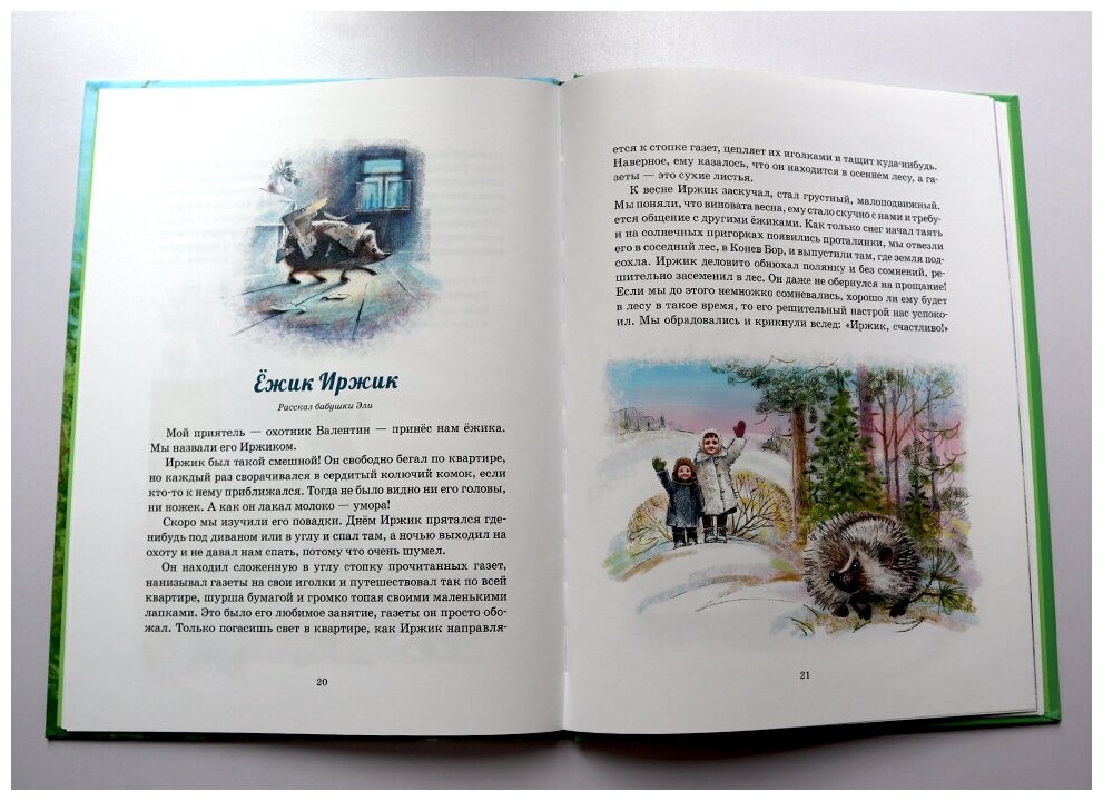 Добрая, легкая книжка, иллюстрации просто прелесть! Украшение - стишки в каждом рассказике. Внуки заинтересовано слушали, разглядывали картинки. Интересны и рассказы о домашних питомцах, и о встречах детей с волком и медведем. Думаю книжка заинтересует и самых маленьких и детей побольше.