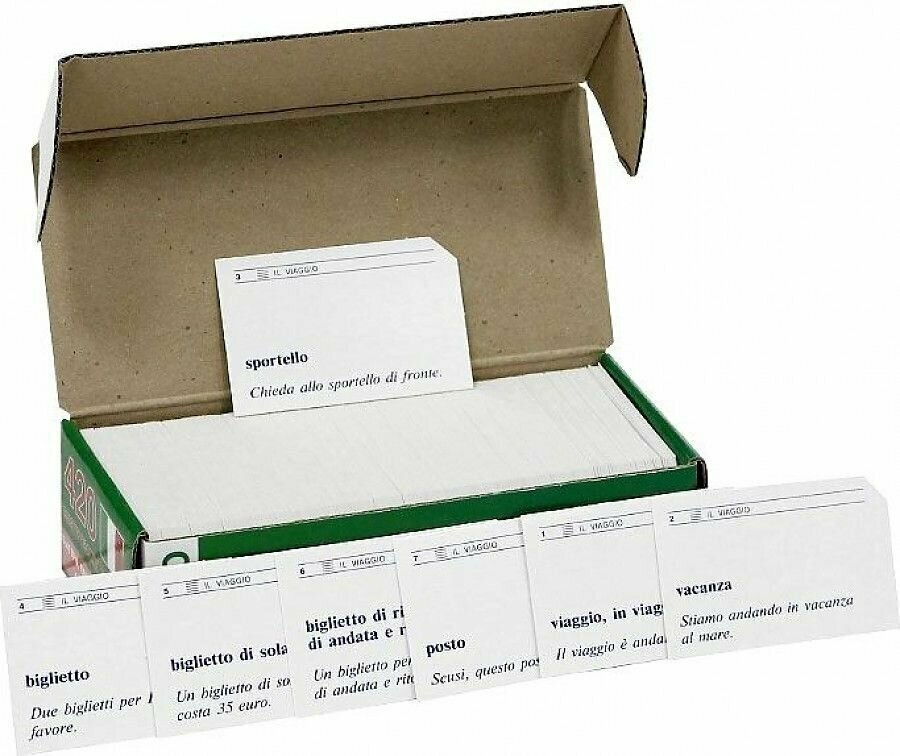 Разговорный практикум. 420 тематических карточек. Слова и словосочетания разделены на 10 тематических блоков. Для начинающих и отправляющихся за границу. С помощью этих карточек вы быстро овладеете наиболее употребительными итальянскими словами и выражениями. Перед тем как отправиться в ресторан, в отель, за покупками, пролистайте карточки по интересующей Вас теме и Вы почувствуете себя намного увереннее. Мы рекомендуем учить слова двумя способами. Сначала посмотрите на итальянскую сторону карточки, прочитайте слово и попытайтесь вспомнить его значение. Если вспомнить перевод не удается, обратитесь к примеру употребления. Или посмотрите на обратную сторону карточки и отложите ее в стопочку «для повторения». Когда Вы добьетесь того, что можете вспомнить перевод всех итальянских слов, переверните стопку карточек и попробуйте перевести русские слова и выражения на итальянский язык.