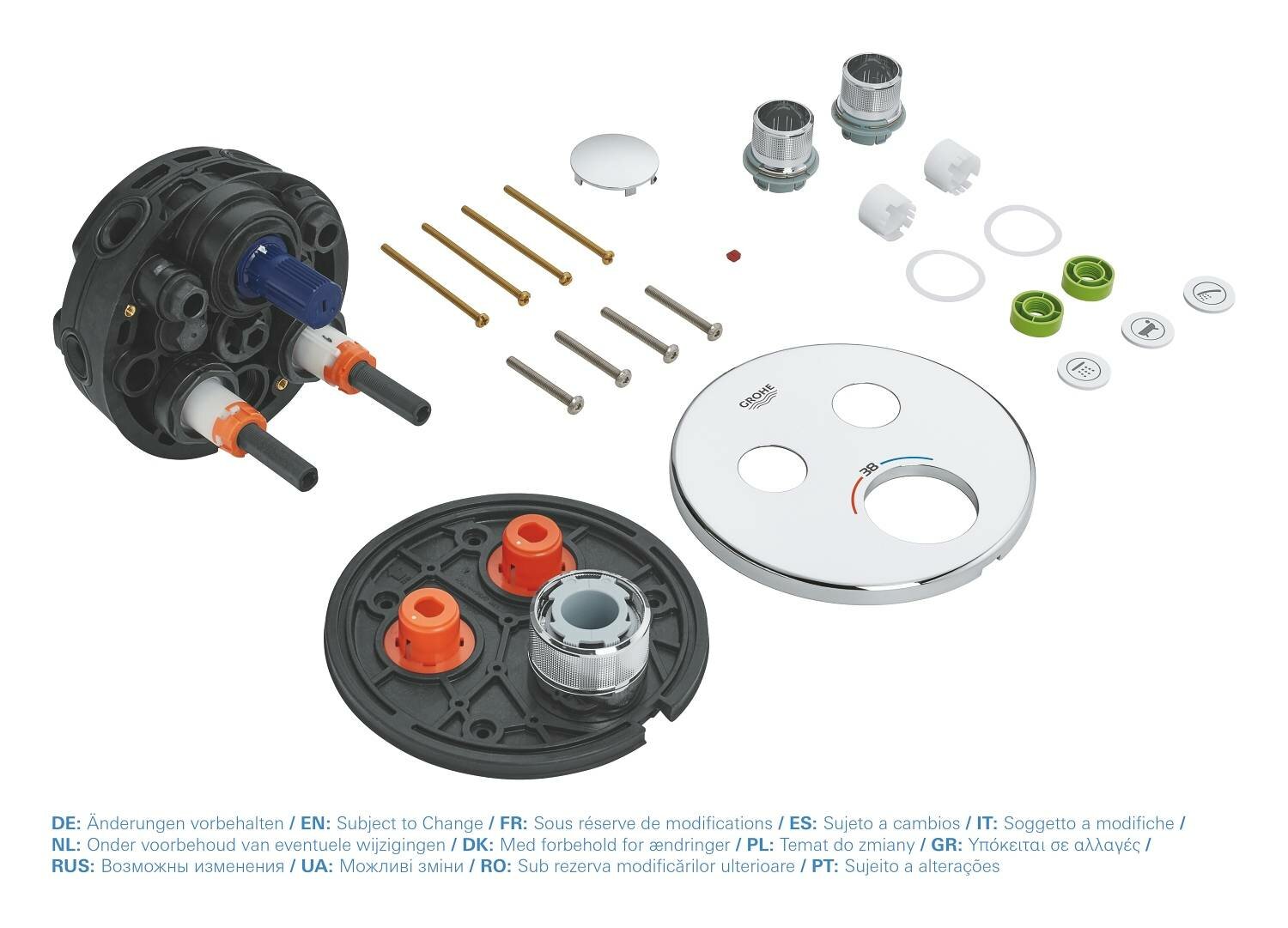 | Технологии | GROHE FastFixation, GROHE Long-Life Finish, GROHE ProGrip, GROHE SafeStop, GROHE SafeStop Plus, GROHE SmartControl, GROHE TurboStat, GROHE Water Saving |