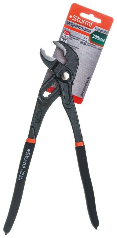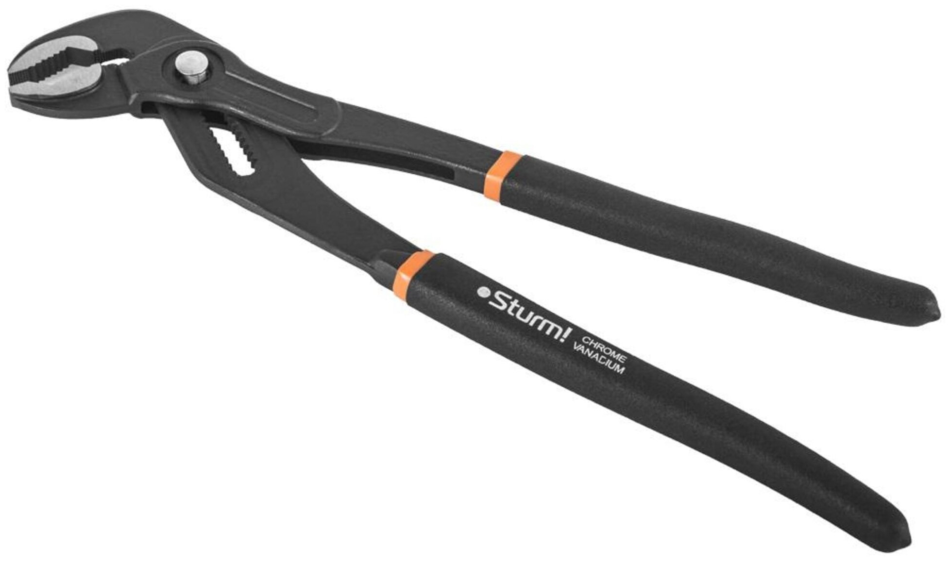 Клещи переставные 300мм(Галка) КНОПОЧНАЯ СИСТЕМА ФИКСАЦИИ,НАСЕЧ ГУБ,ПВХ РУК,Sturm!Переставные клещи с кнопочным механизмом фиксации предназначены для захвата разнообразных по форме предметов в широком диапазоне размеров. Они используются в качестве трубного или разводного ключа. Особенностью данного инструмента является возможность зафиксировать выбранный диапазон раствора губок и предотвратить самопроизвольное его изменение в раскрытом состоянии клещей, что свойственно преставным клещам традиционной конструкции. Данная особенность существенно упрощает работу, снижает время на промежуточную подготовку и повышает комфортность использования клещей. Высокая прочность и износостойкость. Рабочая часть клещей выполнена из высококачественной хромованадиевой стали и имеет твердость 55-59 HRC. Оксидное покрытие обеспечивает защиту от коррозии и долгий срок службы. Удобство и практичность. Длинные рукоятки используются в качестве рычага, чтобы увеличить прикладываемое усилие.