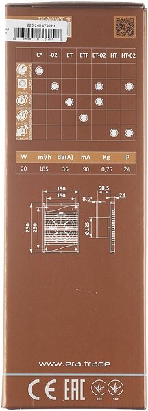 - Вытяжной канальный электрический вентилятор Эра Е125-02 с двигателем на подшипниках скольжения.
