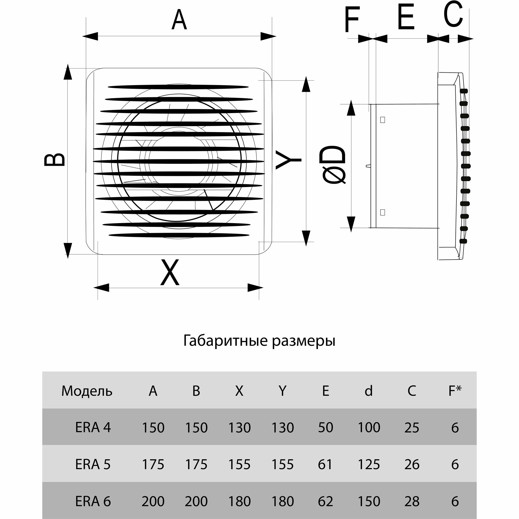 Серия ERA включает в себя бытовые вытяжки с конструкцией для накладного монтажа. Устройства имеют различные исполнения с обратным клапаном, двухскоростным двигателем, антимоскитной сеткой, таймером, индикацией работы и т.д., поэтому могут решать разнообразные задачи. Установка приборов не сопровождается затруднениями.
