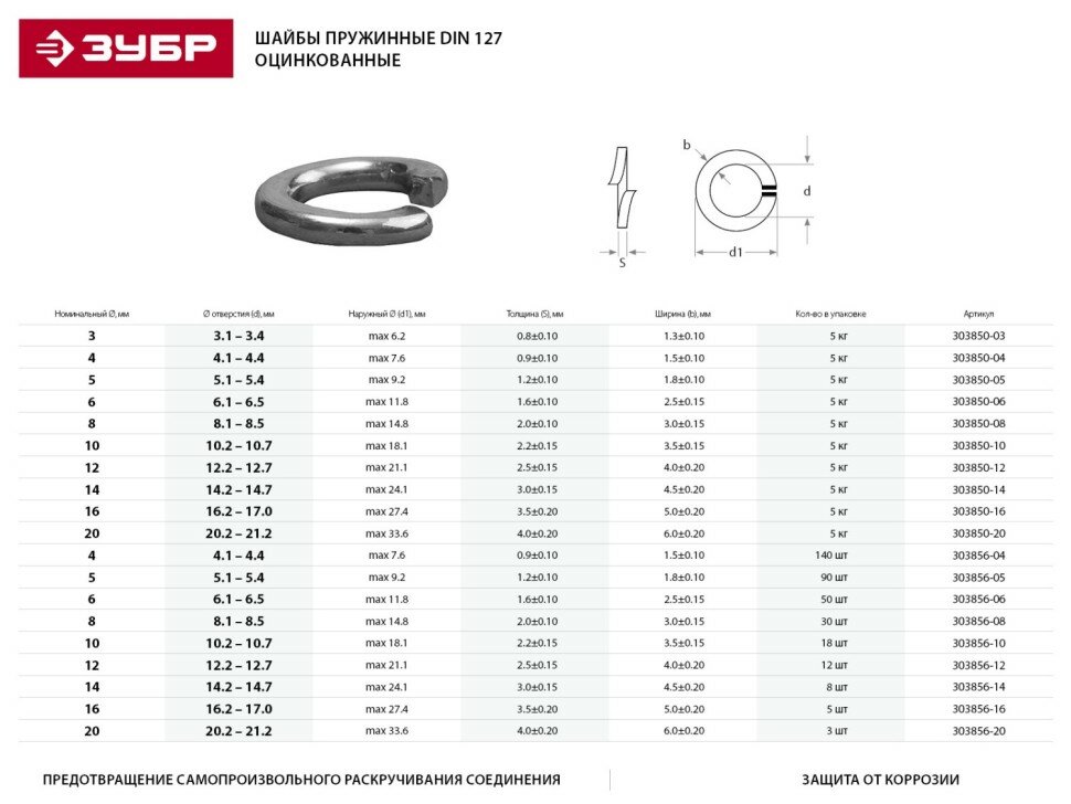 Шайба Зубр МАСТЕР пружинная DIN 127 изготовлена из качественной стали, соответствующей действующим стандартам и техническим предписаниями. Она применяется для уплотнения, а также для предотвращения самопроизвольного раскручивания резьбового соединения.