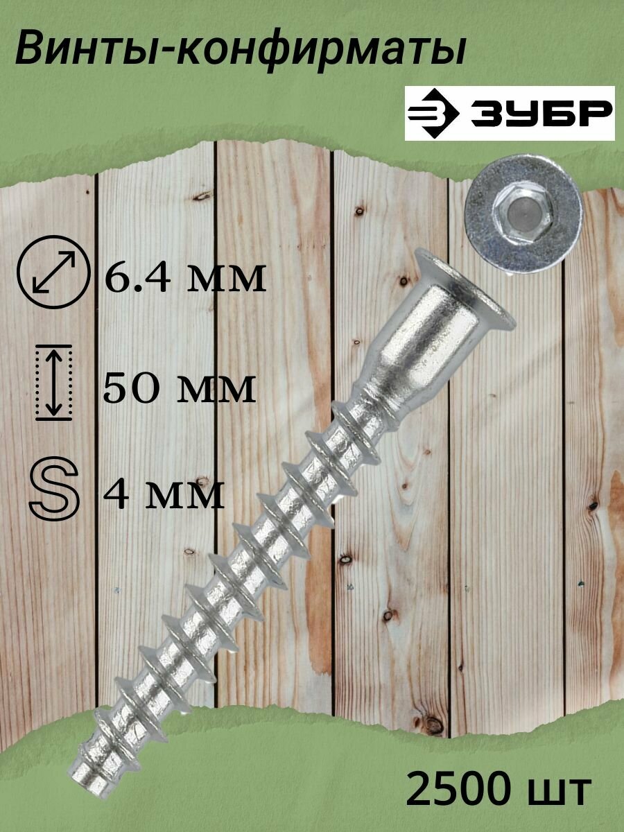 Винт-конфирмат оцинкованный, шестигранный шлиц, 6,4ммx50мм, 2500шт, ЗУБР