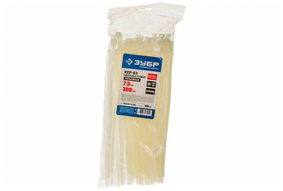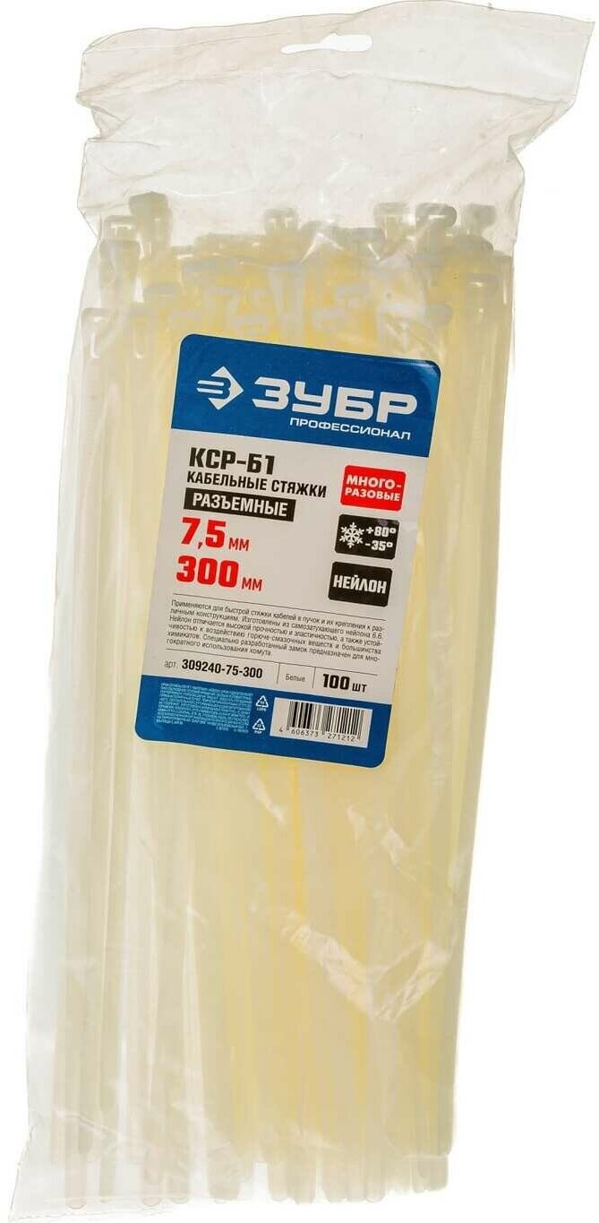 Нейлоновые хомуты ЗУБР 7.5 x 300 мм 100 шт многоразовые
