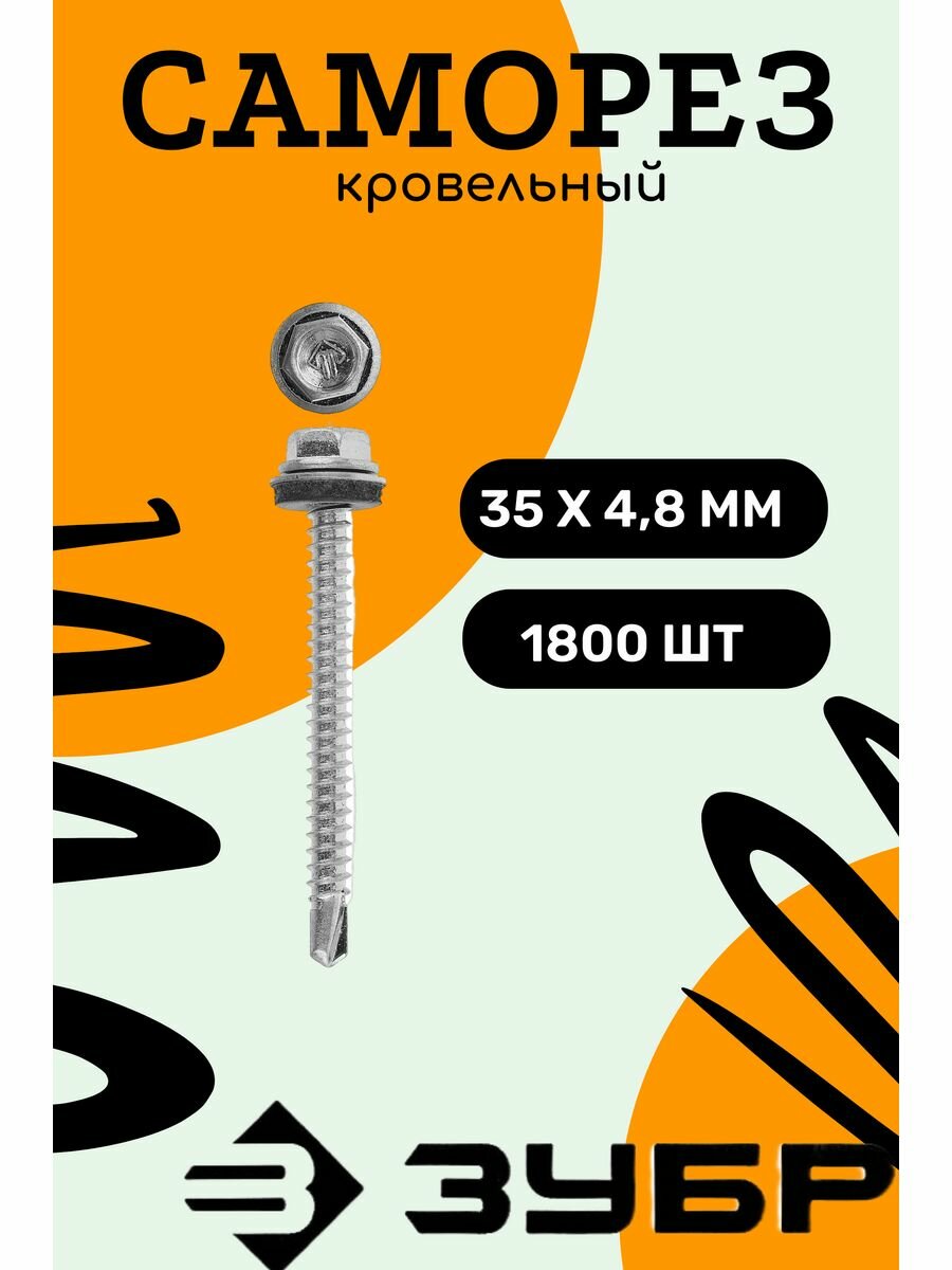 Саморезы СКД кровельные, 35 х 4.8 мм, 1 800 шт, для деревянной обрешетки, ЗУБР Профессионал