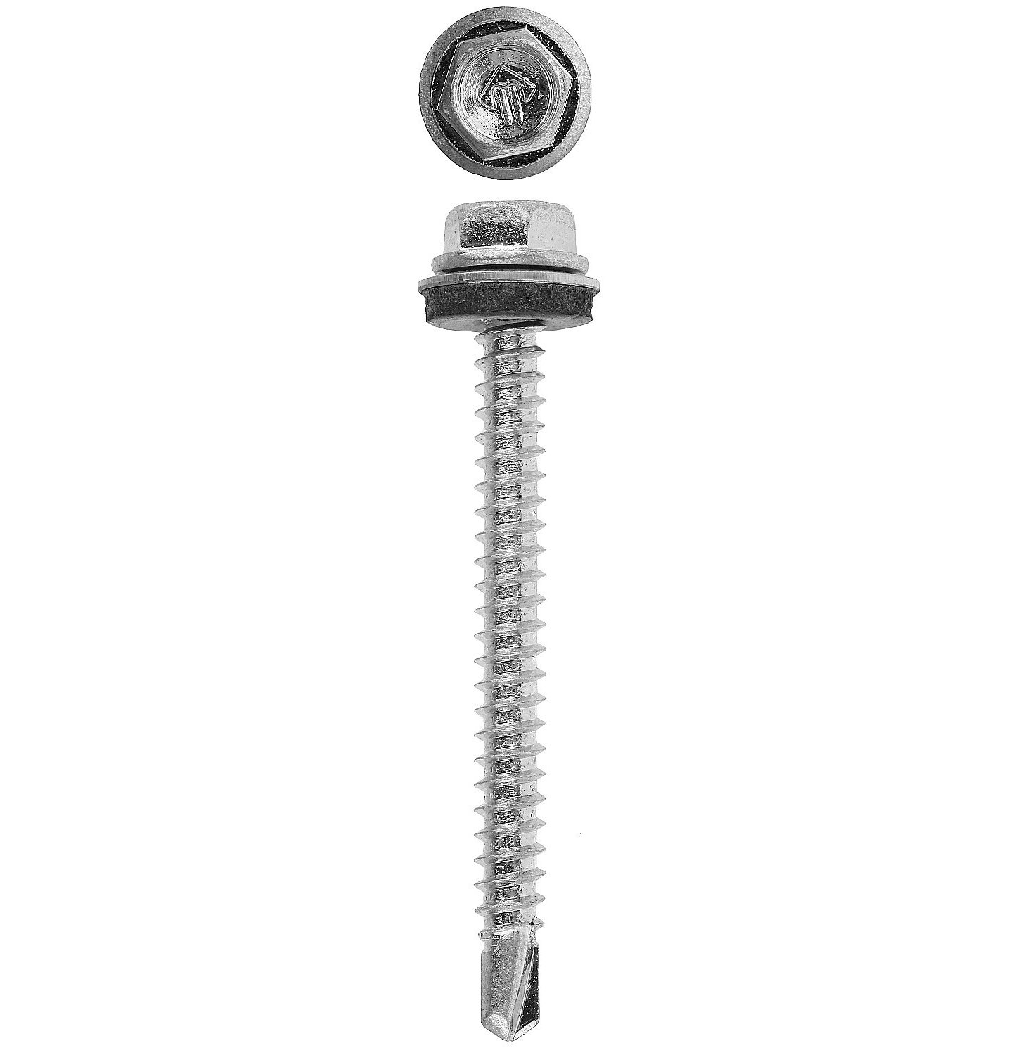 Кровельные саморезы изготовлены из стального прутка с высоким содержанием углерода. Шайба с прокладкой EPDM плотно прижимается к кровельному материалу, герметизируя просверленное отверстие. Шестигранная головка выдерживает большой крутящий момент и значительно облегчает вкручивание самореза.
