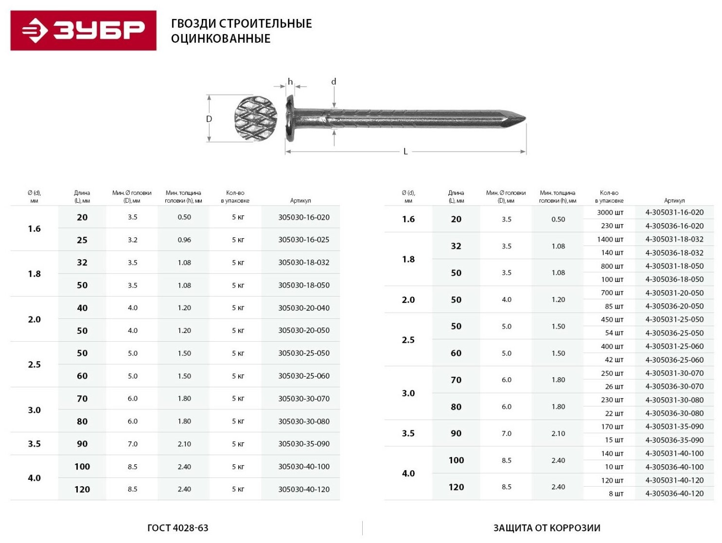 | Тип | Гвозди строительные ГОСТ 4028-63 |