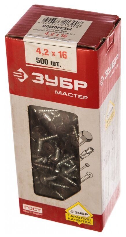 Ассортиментный ряд крепежной продукции ЗУБР предоставляет широкий выбор саморезов и шурупов для крепления любых материалов (гипсокартон, фанера, ДСП, листовой металл и проч.) к различным основаниям.Саморезы с пресс-шайбой изготовлены из высококачественной стали, прошедшей термическую обработку. Предназначены для крепления тонких листов металла, профилей, пластика и др. к листовому металлу толщиной до 2 мм.