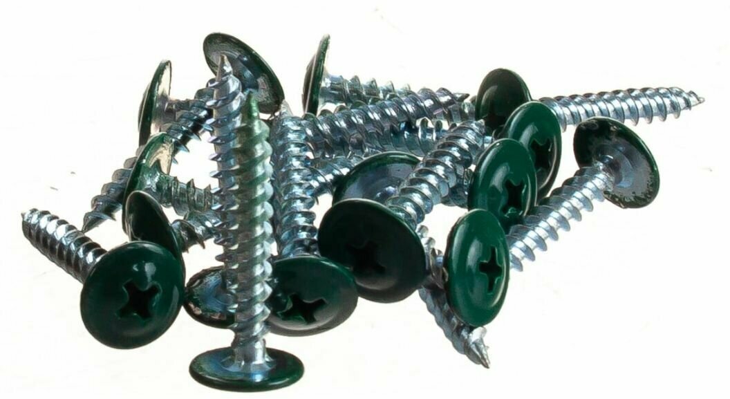 Саморезы с пресс-шайбой для листового металла изготовлены из стального прутка с высоким содержанием углерода. Контроль за геометрией самореза начинается с калибровки прутка и заканчивается тщательной проверкой размеров готового изделия. Нормативная твердость стали достигается термической обработкой. Поверхностная твердость 550-720HV, твердость в сердцевине 240-450HV. Саморезы легко вкручиваются обычным шуруповертом или отверткой с крестообразным шлицем PH2 (DIN). Предварительное сверление в скрепляемых материалах не требуется. Геометрические размеры: диаметр пресс-шайбы (W) - 10.5-11.0мм, диаметр головки (Dk) - 6.5-7.0мм, диаметр резьбы (D) - 4.1-4.3мм, шаг резьбы (Pi) - 3.38мм.ПреимуществаПресс-шайба увеличивает площадь опорной поверхности и предотвращает продавливание головки, благодаря чему саморезами можно крепить даже мягкие материалы.Окраска головки с пресс-шайбой выполнена методом порошкового напыления. Cтандарт RAL поможет безошибочно подобрать саморезы под цвет соединяемых материалов.Цинковое покрытие надежно защищает от коррозииИспользованиеДля крепления тонких листов металла, профилей, пластика и др. к листовому металлу толщиной до 0.9 мм.