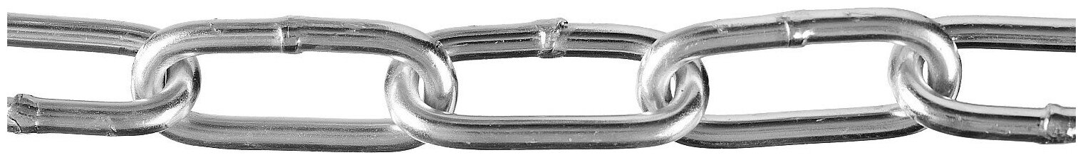 Длиннозвенная цепь Профессионал DIN 763 4 мм L=70м. Стальные длиннозвенные цепи общего назначения состоят из овальных сварных звеньев. Обладают отличной гибкостью, благодаря чему цепи находят широкое применение в строительстве и быту.
