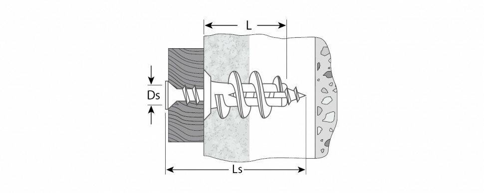 - Высокая резьба с крупным шагом увеличивает площадь контакта и фиксирует дюбель в гипсокартоне, не разрушая его