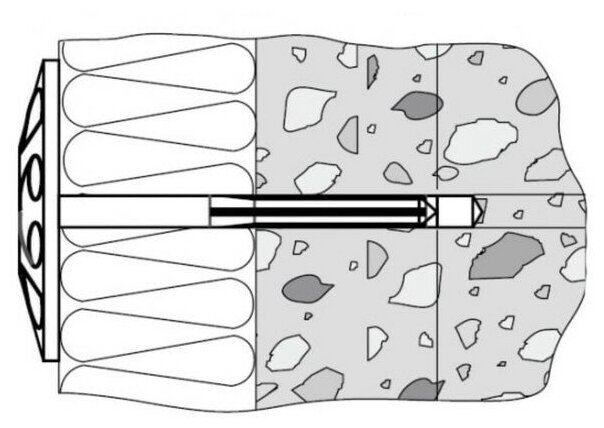 Большой диаметр головки дюбеля позволяет крепить как твердые, так и мягкие теплоизоляционные материалы (минеральную вату, стекловату, полистирол, пенопласт и др.), препятствуя их разрыву или повреждению в месте крепления. Пластиковый гвоздь обладает низкой теплопроводностью, что исключает появление ″мостиков холода″ и образование конденсата.