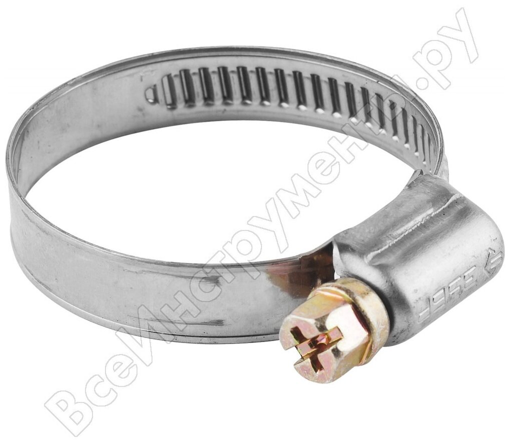 Червячный хомут предназначен для многократного использования. Состоит из штампованной нержавеющей ленты и винта с червячной резьбой. Накатная лента с гладкой внутренней поверхностью предотвращает повреждения скрепляемых материалов. Шестигранная головка и комбинированный шлиц SL+PH позволяют использовать при монтаже гаечный ключ или отвертку.