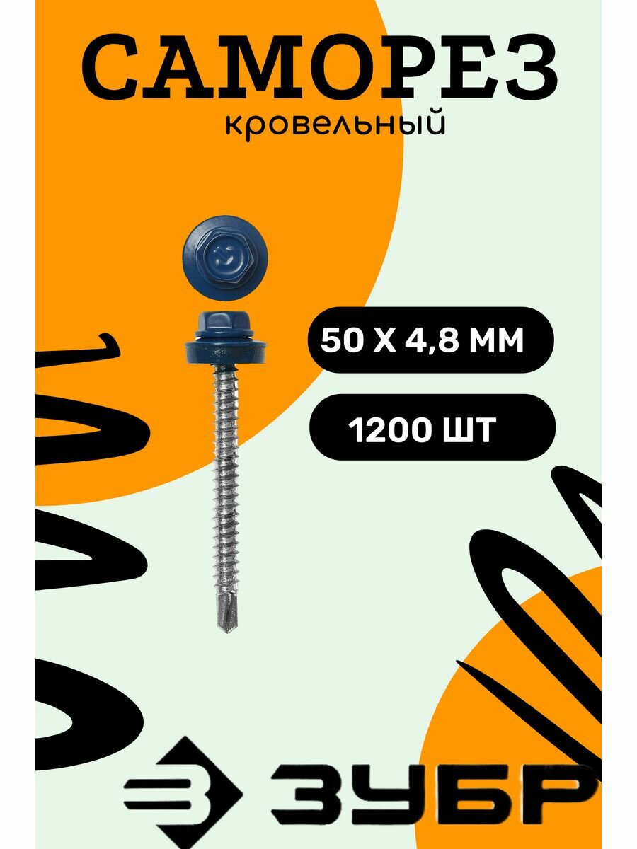 Оцинкованные саморезы для крепления кровельных материалов к деревянной обрешетке ЗУБР СКД кровель. ral 5005 синий насыщ. 50x4.8мм 1 200 шт