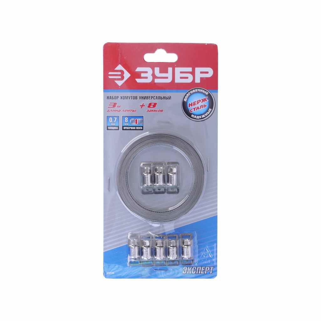Набор ЗУБР Профессионал Хомут универсальный нержавеющий 3мх8мм 8 замков