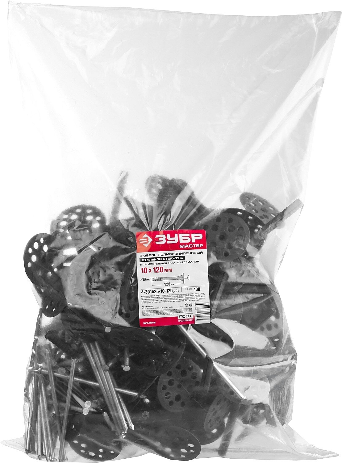 Дюбель для изоляционных материалов полипропиленовый, металлический стержень, , 100 шт, ЗУБР