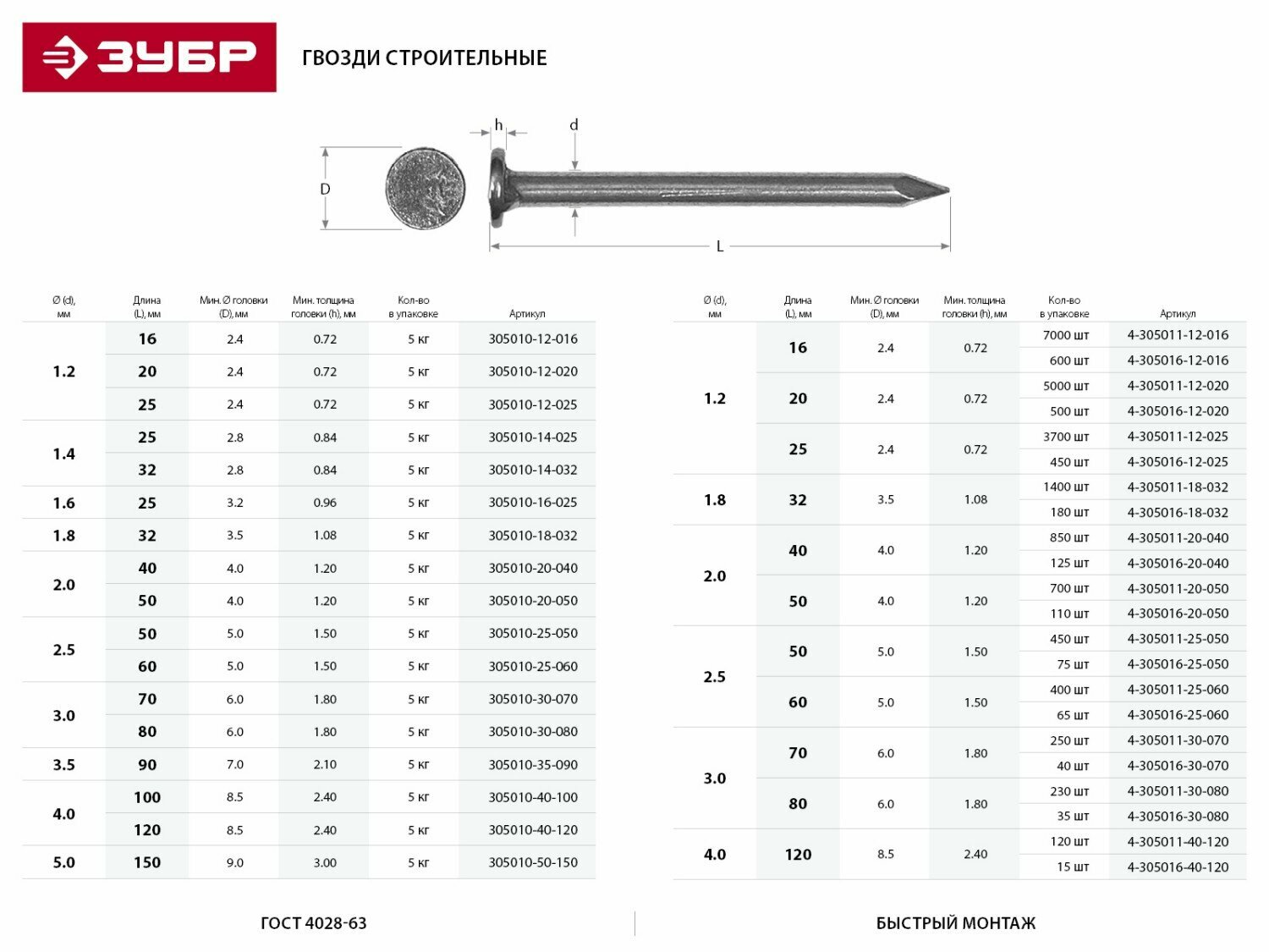 | Тип | Гвозди строительные ГОСТ 4028-63 |