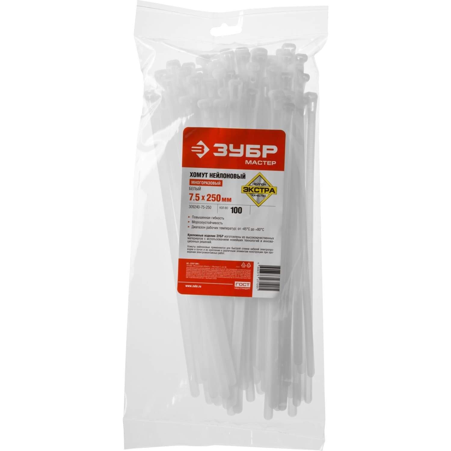Нейлоновые хомуты ЗУБР 7.5 x 250 мм 100 шт многоразовые