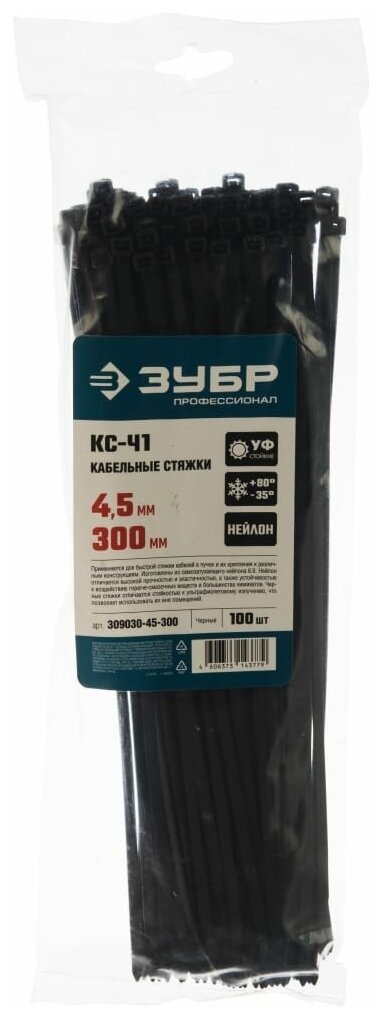 Нейлоновые хомуты ЗУБР 4.5 x 300 мм 100 шт черные